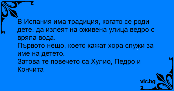 В Испания има традиция, когато се роди дете, да излеят на оживена улица ведро с вряла вода.
