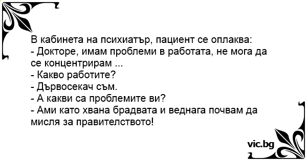 - Докторе, имам проблеми в работата, не мога да се концентрирам ...