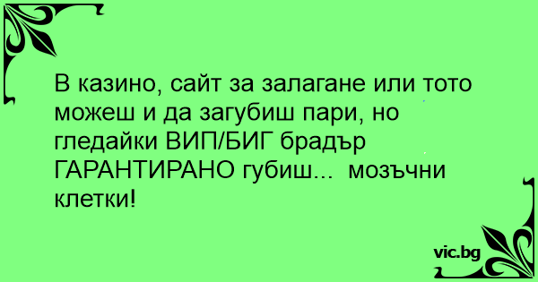 В казино, сайт за залагане или тото можеш и да загубиш пари, но гледайки ВИП/БИГ брадър ГАРАНТИРАНО губиш... мозъчни клетки!