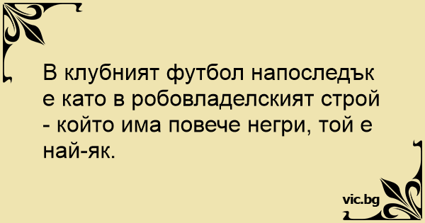 В клубният футбол напоследък е като в робовладелският строй - който има повече негри, той е най-як.
