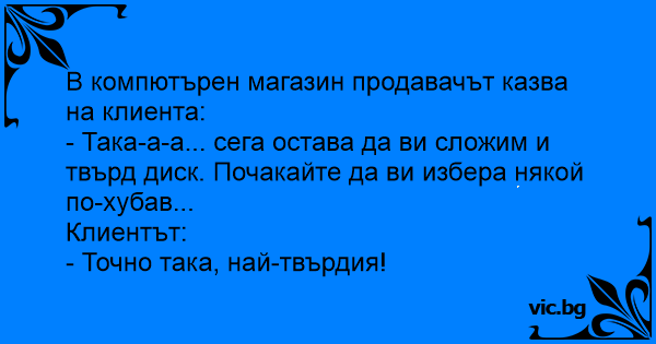 • Вицове от Facebook от нашата страница https://www.facebook.com/www.vic.bg