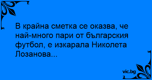 В крайна сметка се оказва, че най-много пари от българския футбол, е изкарала Николета Лозанова...
