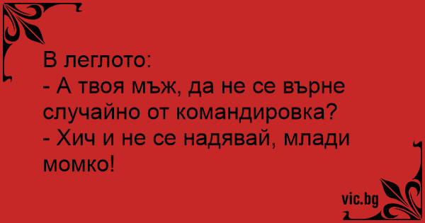 В леглото: - А твоя мъж, да...