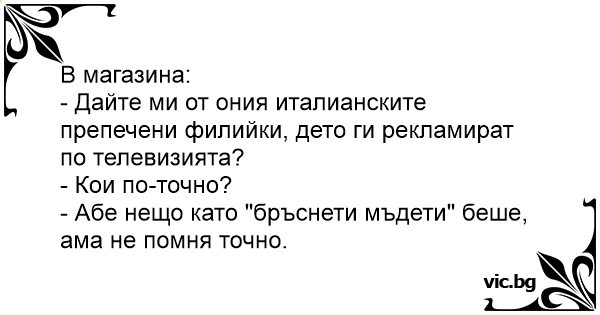- Дайте ми от ония италианските препечени филийки, дето ги рекламират по телевизията?