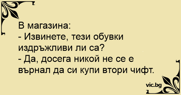 • Вицове от Facebook от нашата страница https://www.facebook.com/www.vic.bg