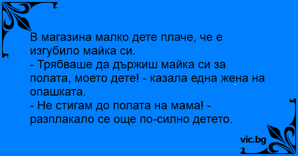 • Вицове от Facebook от нашата страница https://www.facebook.com/www.vic.bg