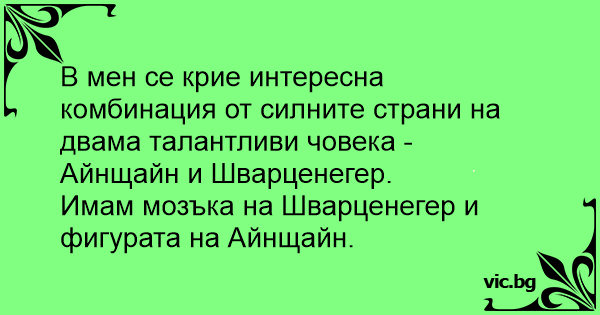 В мен се крие интересна комбинация от силните страни на двама талантливи човека - Айнщайн и Шварценегер.