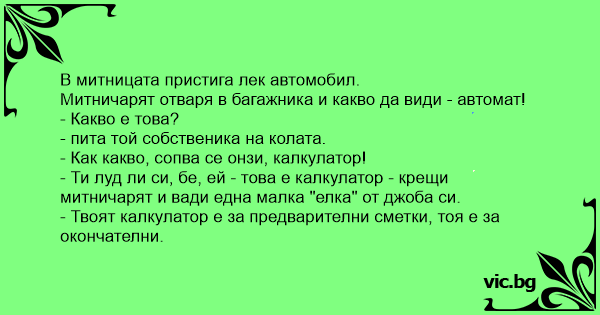 - Ти луд ли си, бе, ей - това е калкулатор - крещи митничарят и вади една малка "елка" от джоба си.
