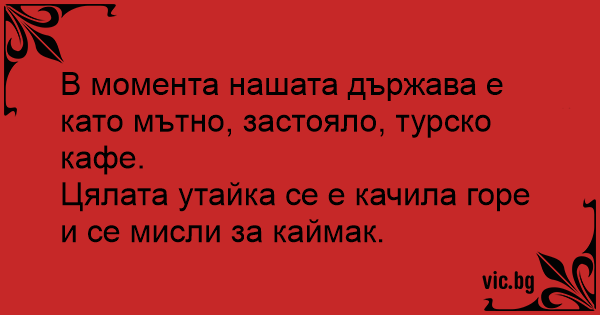 В момента нашата държава е като мътно, застояло, турско кафе.