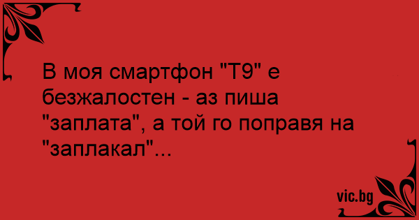 В моя смартфон "Т9" е безжалостен - аз пиша "заплата", а той го поправя на "заплакал"...