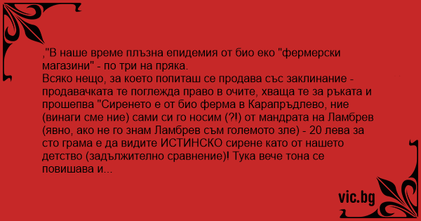 ,"В наше време плъзна епидемия от био еко "фермерски магазини" - по три на пряка.