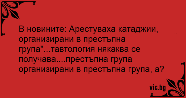 В новините: Арестуваха катаджии, организирани в престъпна група"...тавтология някаква се получава....престъпна група организирани в престъпна група, а?