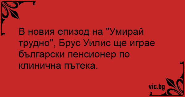В новия епизод на "Умирай трудно", Брус Уилис ще играе български пенсионер по клинична пътека.