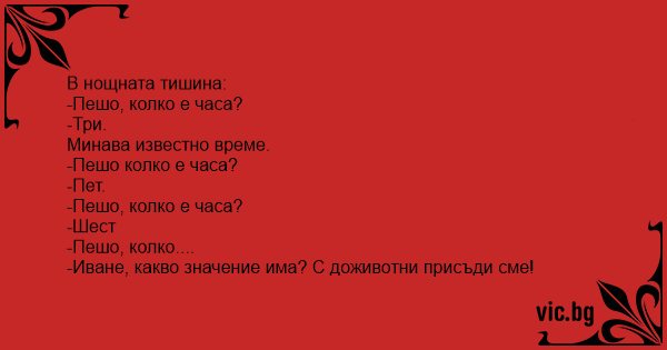 -Пешо, колко е часа?