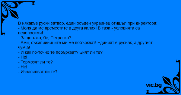 В някакъв руски затвор, един осъден украинец отишъл при директора: