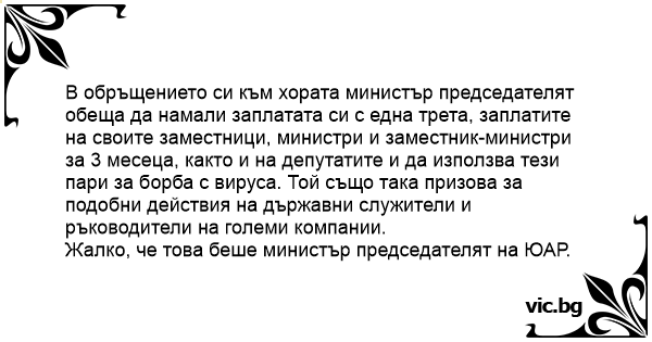 Жалко, че това беше министър председателят на ЮАР.