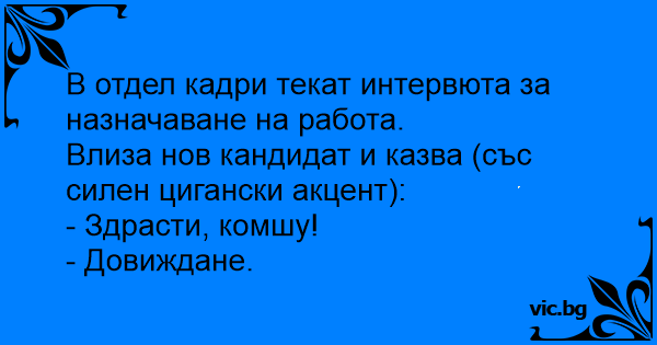 Влиза нов кандидат и казва (със силен цигански акцент):