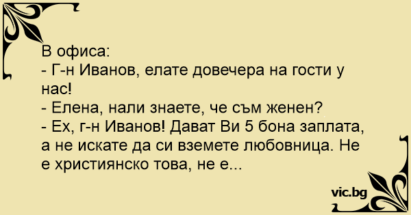 - Ех, г-н Иванов! Дават Ви 5 бона заплата, а не искате да си вземете любовница. Не е християнско това, не е...