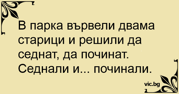 В парка вървели двама старици и решили да седнат, да починат.
