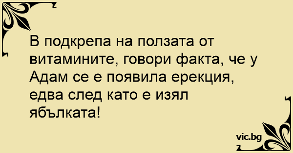 В подкрепа на ползата от витамините, говори факта, че у Адам се е появила ерекция, едва след като е изял ябълката!