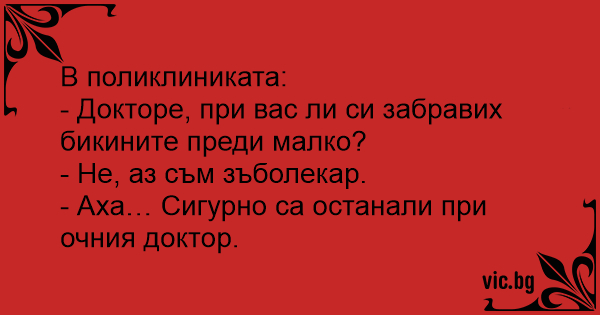 - Докторе, при вас ли си забравих бикините преди малко?