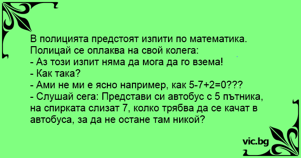 В полицията предстоят изпити по математика. Полицай се оплаква на свой колега: