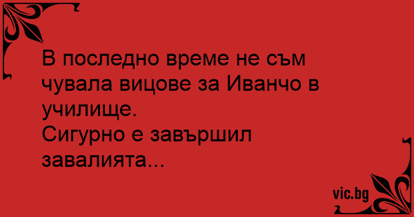 В последно време не съм чувала вицове за Иванчо в училище.
