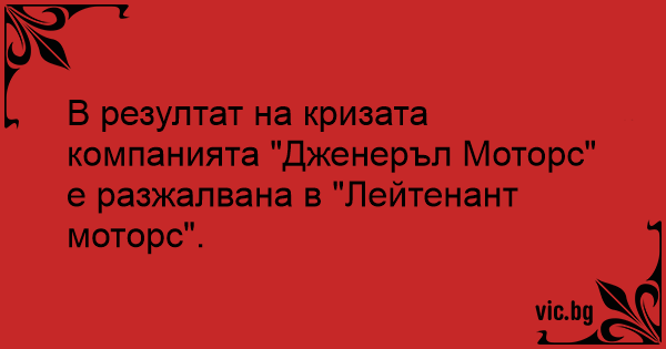 В резултат на кризата компанията "Дженеръл Моторс" е разжалвана в "Лейтенант моторс".