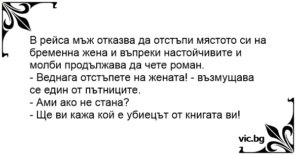 В рейса мъж отказва да отстъпи мястото си на бременна жена и въпреки настойчивите и молби продължава да чете роман.