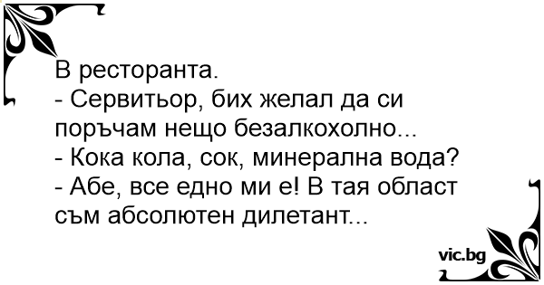 - Сервитьор, бих желал да си поръчам нещо безалкохолно...