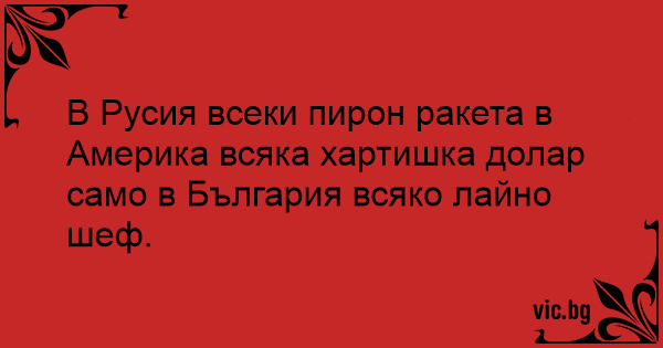 В Русия всеки пирон ракета в Америка всяка хартишка долар само в България всяко лaйнo шеф.