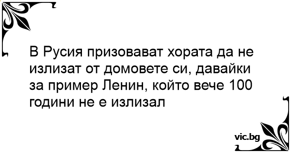 В Русия призовават хората да не излизат от домовете си, давайки за пример Ленин, който вече 100 години не е излизал