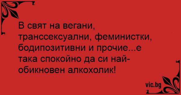 В свят на вегани, транссексуални, феминистки, бодипозитивни и прочие...е така спокойно да си най-обикновен алкохолик!