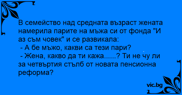 - Жена, какво да ти кажа......? Ти не чу ли за четвъртия стълб от новата пенсионна реформа?