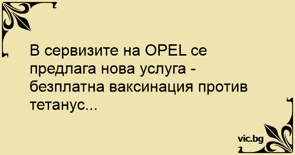В сервизите на OPEL се предлага нова услуга - безплатна ваксинация против тетанус...