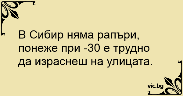 В Сибир няма рапъри, понеже при -30 е трудно да израснеш на улицата.