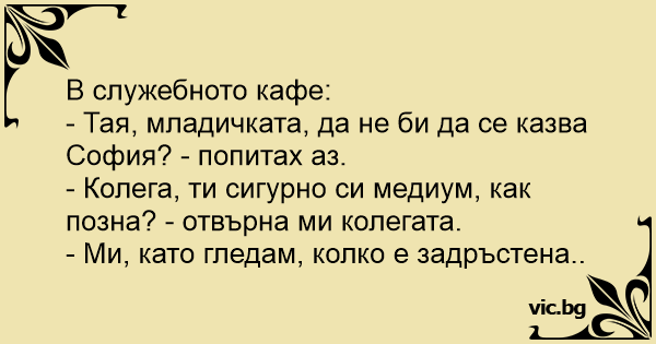 В служебното кафе: - Тая,...