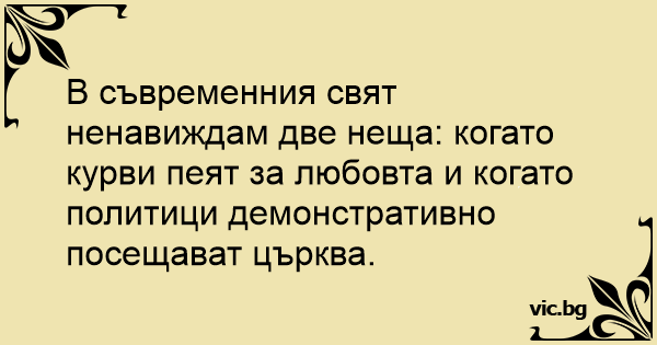 В съвременния свят ненавиждам две неща: когато kуpbи пеят за любовта и когато политици демонстративно посещават църква.