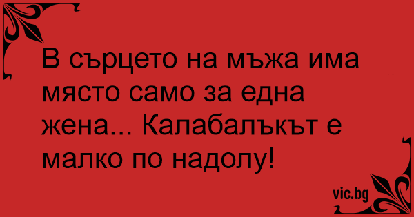 В сърцето на мъжа има място само за една жена... Калабалъкът е малко по надолу!