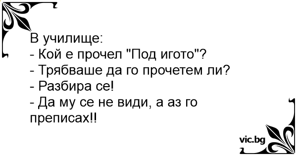 • Вицове от Facebook от нашата страница https://www.facebook.com/www.vic.bg