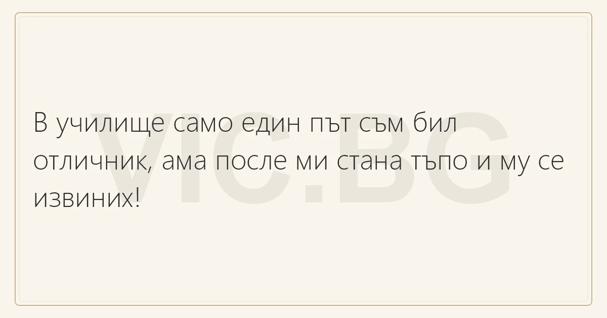В училище само един път съм бил отличник, ама после ми стана тъпо и му се извиних! 2 0 0 Вицове за училището