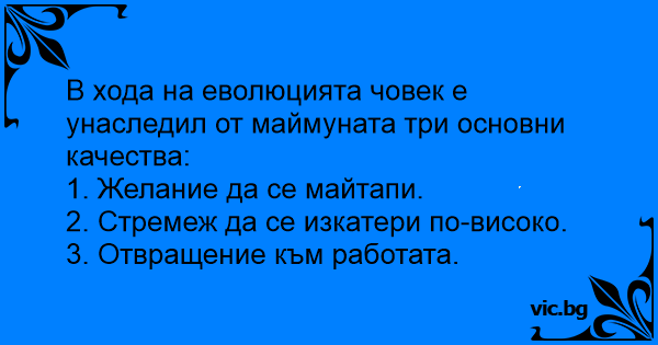 • Вицове от Facebook от нашата страница https://www.facebook.com/www.vic.bg