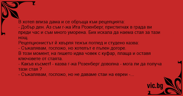 - Какъв късмет! - казва г-жа Розенберг доволна - мога ли да получа тази стая ?