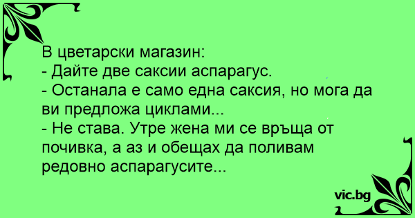 • Вицове от Facebook от нашата страница https://www.facebook.com/www.vic.bg