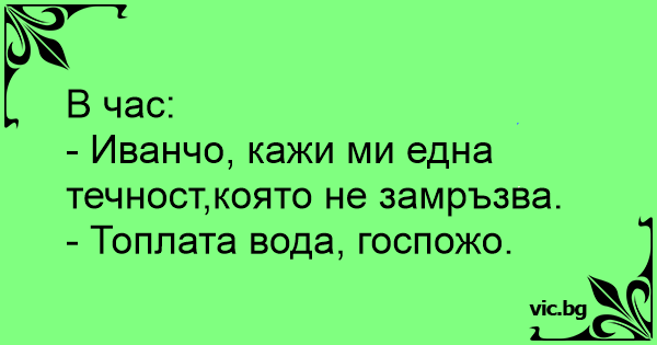 - Иванчо, кажи ми една течност,която не замръзва.
