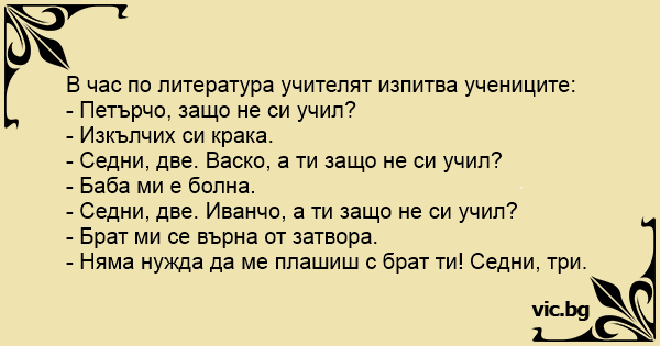 • Вицове от Facebook от нашата страница https://www.facebook.com/www.vic.bg