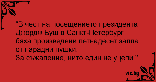 "В чест на посещението президента Джордж Буш в Санкт-Петербург бяха произведени петнадесет залпа от парадни пушки.