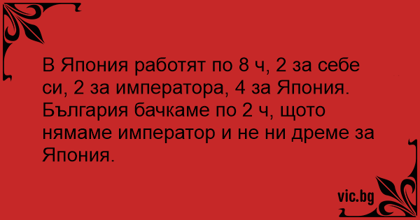 В Япония работят по 8 ч, 2 за себе си, 2 за императора, 4 за Япония.