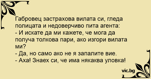 Габровец застрахова вилата си, гледа полицата и недоверчиво пита агента:
