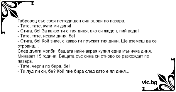 Габровец със своя петгодишен син върви по пазара.